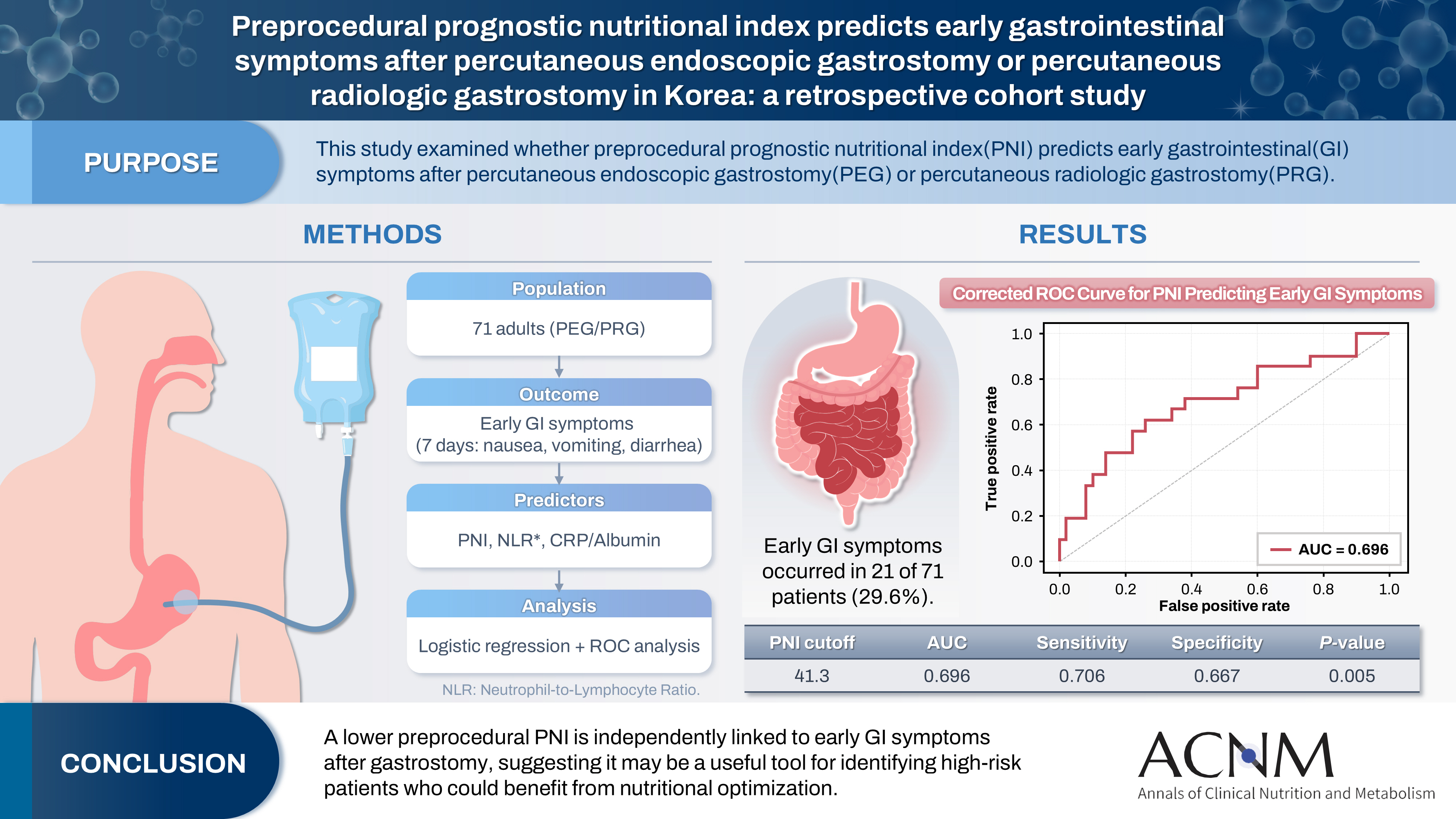 Preprocedural prognostic nutritional index predicts early gastrointestinal symptoms after percutaneous endoscopic gastrostomy or percutaneous radiologic gastrostomy in Korea: a retrospective cohort study Yoonhong Kim