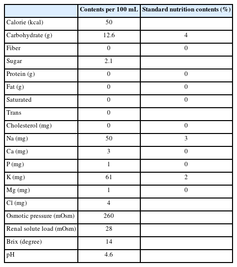 The ingredient of oral carbohydrate-rich solution which was used in this study is shown (